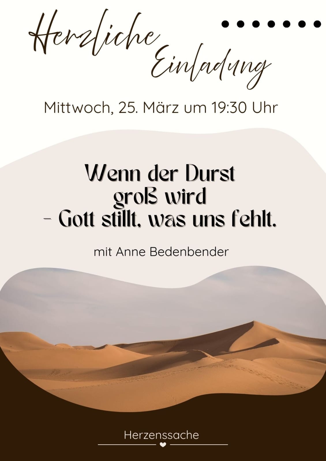 Mit Anne Bedenbender, zum Thema „Wenn der Durst groß wird – Gott stillt, was uns fehlt.“